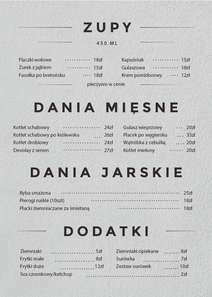 Menu tego uroczego lokalu to prawdziwa uczta dla podniebienia. Oferta obejmuje różnorodne dania, w tym pyszne pizze z oryginalnymi składnikami, aromatyczne burgery przygotowywane z najlepszej jakości mięsa oraz domowe obiady, które zachwycają autentycznym smakiem domowych potraw.